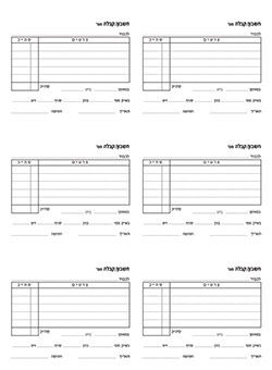 להזמנת פנקס בגודל 9.5/9.5 ס׳׳מ המכיל 6 בדף יש לשלוח קובץ pdf בגודל 8/2 ס׳׳מ המכיל את כל הפרטים הרצויים בראש הדף